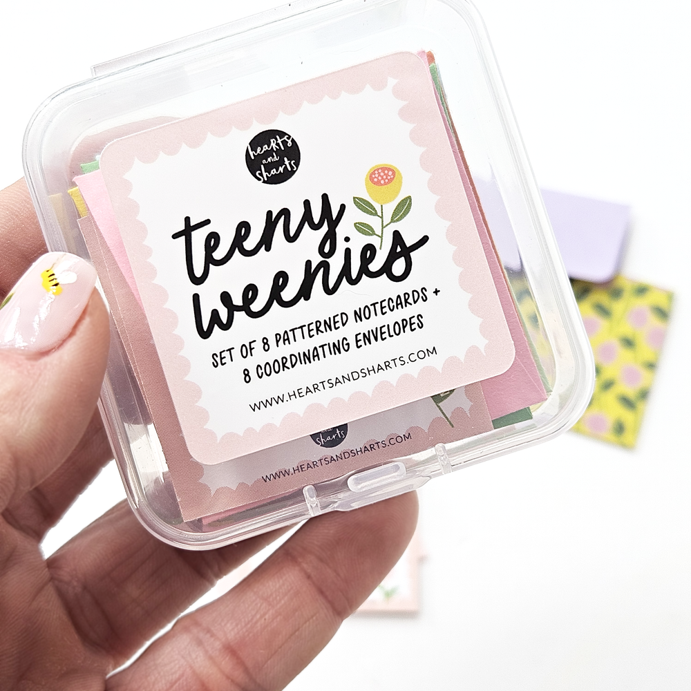 FLORAL TEENY WEENIES - 8 SMALL NOTECARDS + 8 COORDINATING, SEALING, 2X2 ENVELOPES (Copy)