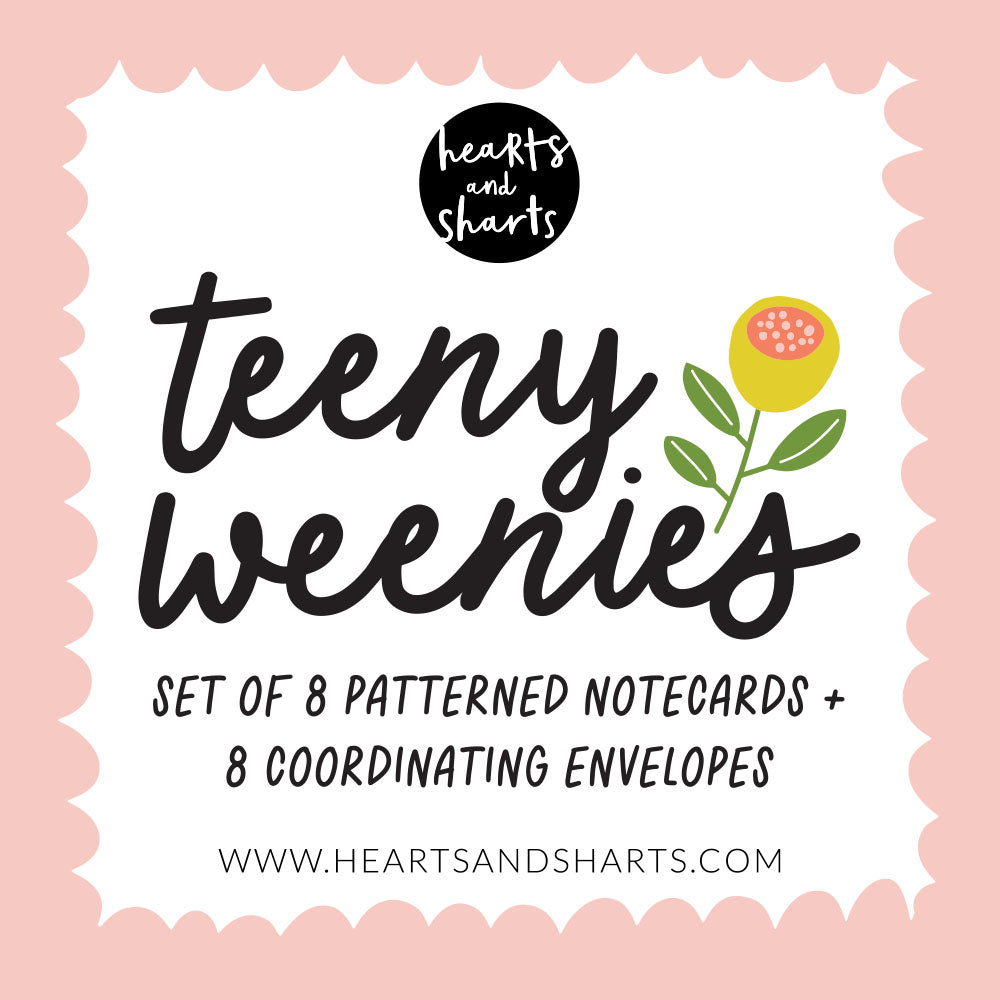 CUTE HOLIDAY TEENY WEENIES - 8 SMALL NOTECARDS + 8 COORDINATING, SEALING, 2X2 ENVELOPES (Copy) (Copy)