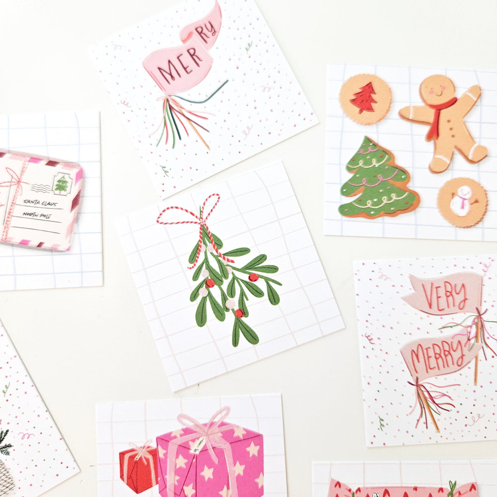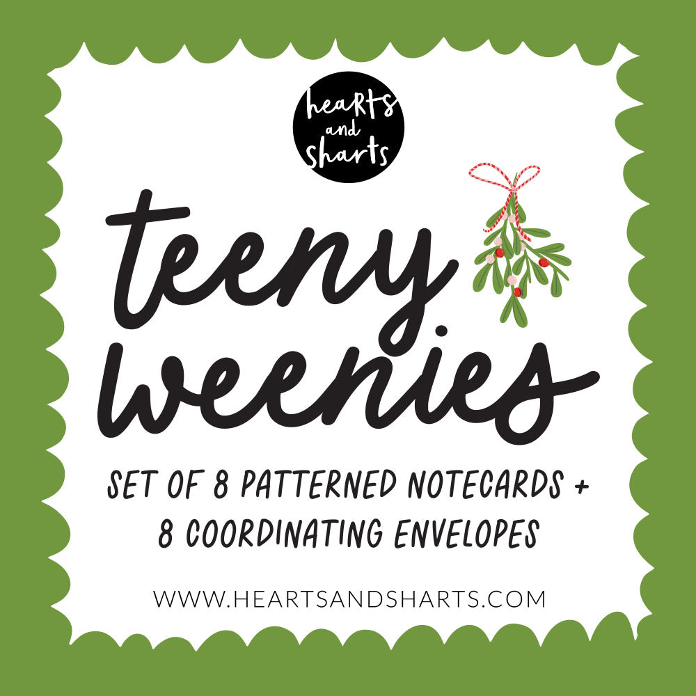 CUTE HOLIDAY TEENY WEENIES - 8 SMALL NOTECARDS + 8 COORDINATING, SEALING, 2X2 ENVELOPES