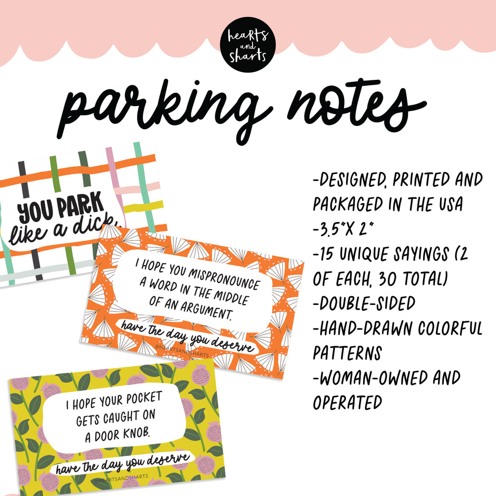 PARKING NOTES - YOU PARK LIKE A D PARKING NOTES - SET OF 30 DOUBLE-SIDED CARDS