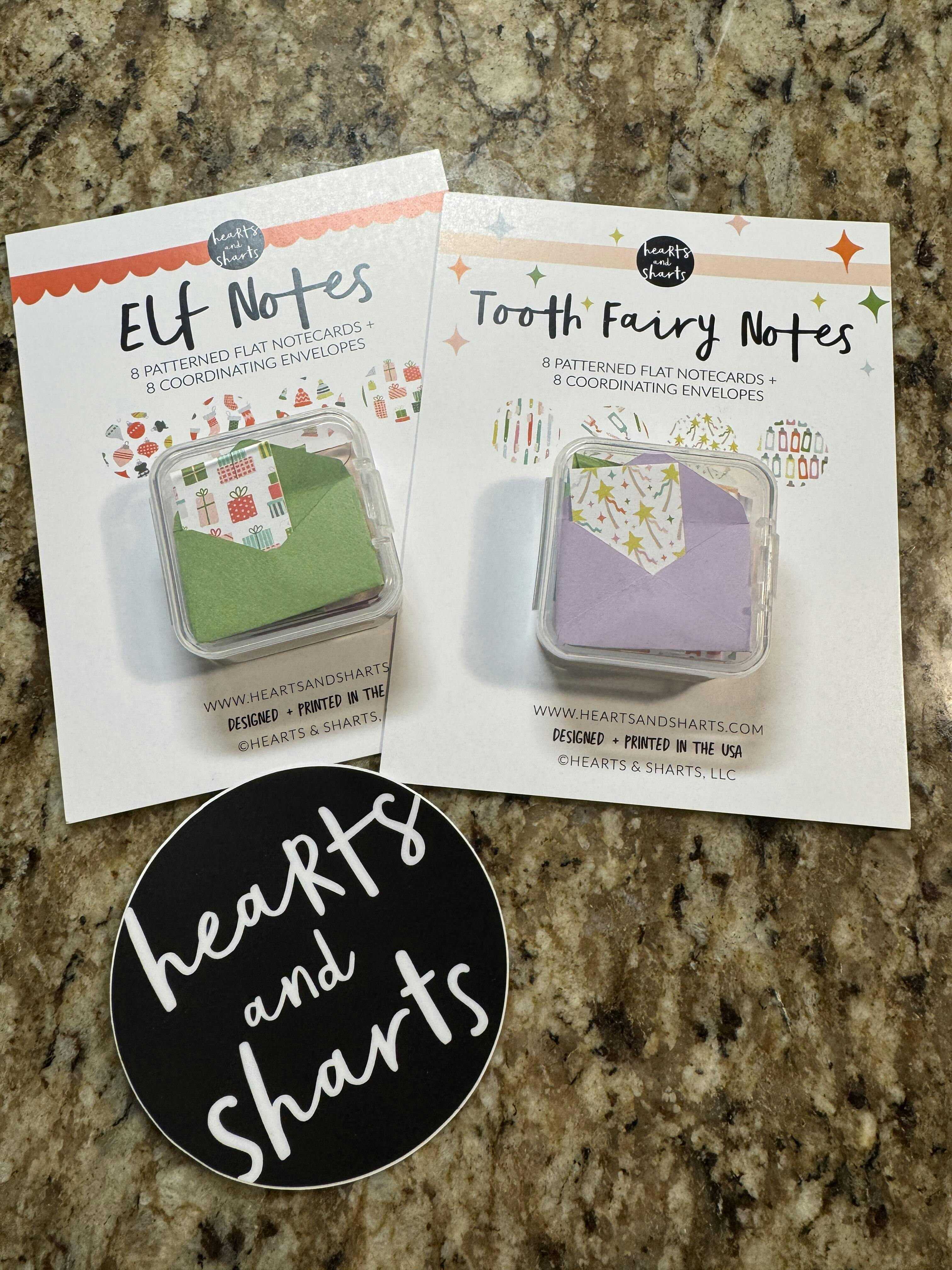 TOOTH FAIRY NOTES - 8 PATTERNED FLAT NOTECARDS - 4 DESIGNS - 2 OF EACH